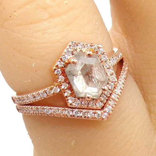 1ctw Rose Cut Diamond Halo Engagement Wedding Band Set 14k Rose Gold Ring Llg2 Ebay